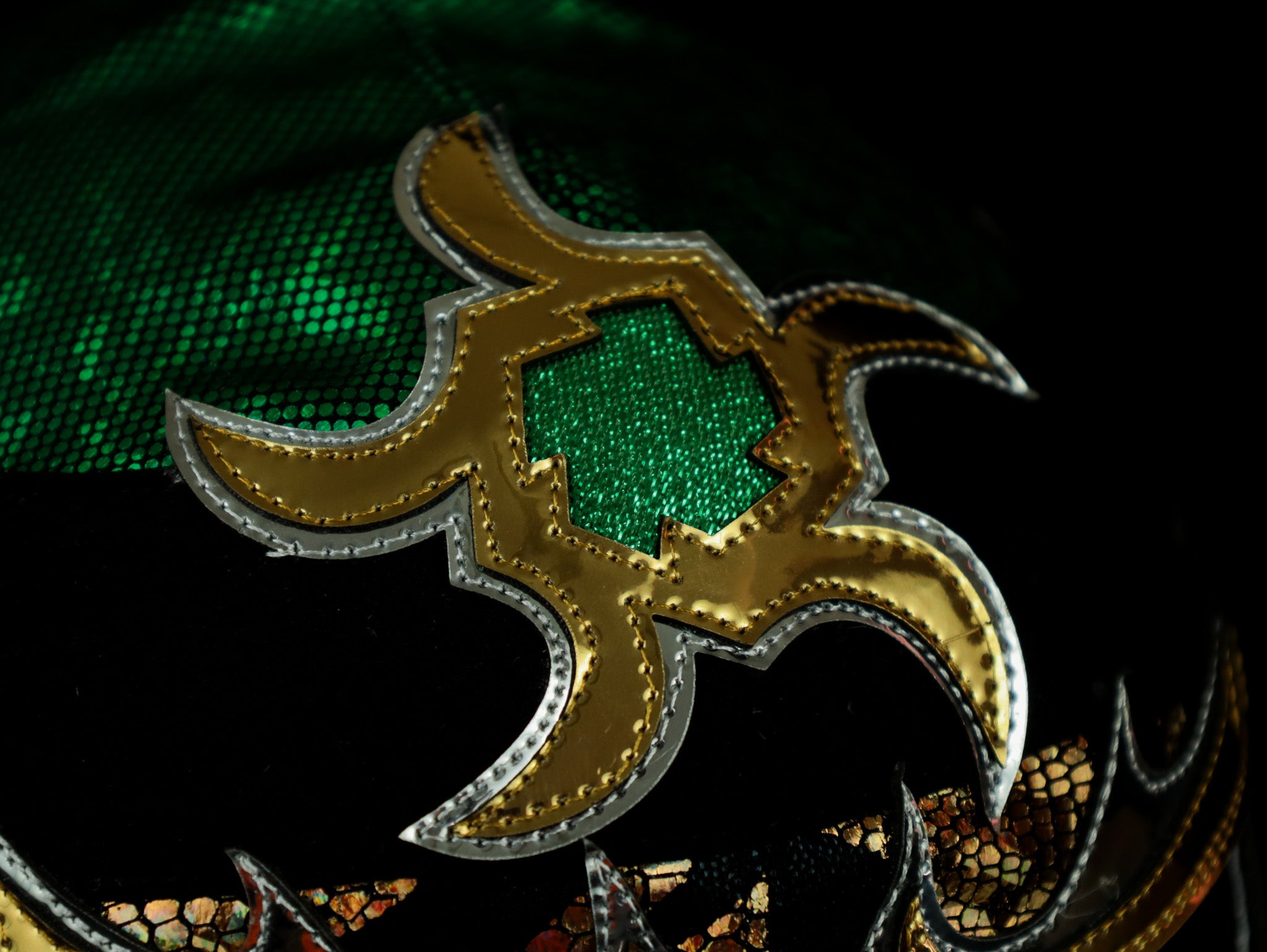 We use several fabrics like Hologram Lycra, Reversible Spangle, Japanese Lame, Puntini Hologram, and Scale Dragon